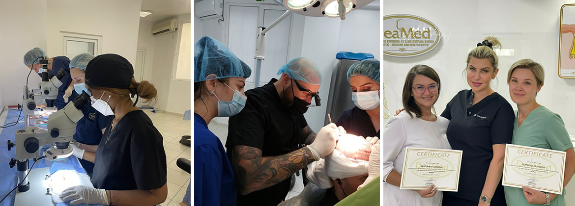 Более 14 лет врачи клиники ДЕАМЕД обучают врачей и ассистентов по специальности «Трансплантация волос». Программа курса обучения, рассчитанная на 21 календарный день полностью направлена на практический аспект. После обучения на муляжах курсант участвует во всех этапах операции. Именно поэтому наши курсанты, окончившие обучение, получают такой уровень подготовки, что они могут самостоятельно выполнять пересадку волос полностью от начала до конца. Клиника ДЕАМЕД обеспечивает проживание курсантов в гостинице и двукратное питание в день на протяжении всего срока обучения. Их встречают и провожают!